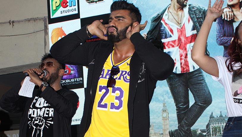 Arjun Kapoor and Parineeti Chopra were snapped at MMK College in Mumbai as they unveiled their latest song, Proper Patola from their upcoming film, Namaste England. Click ahead for more pictures.